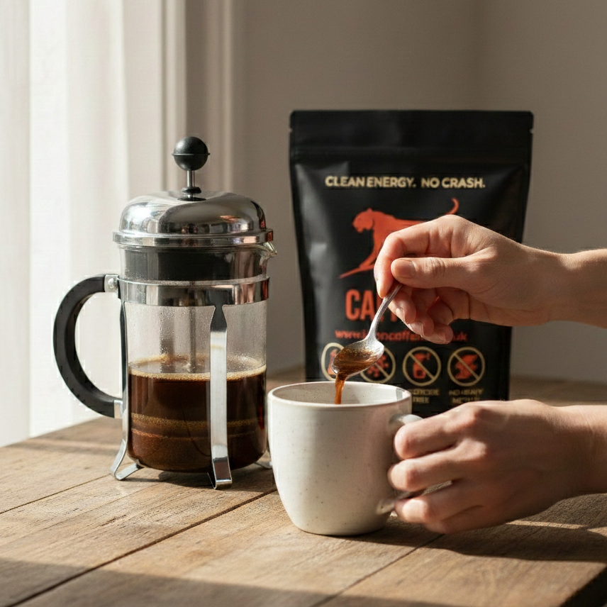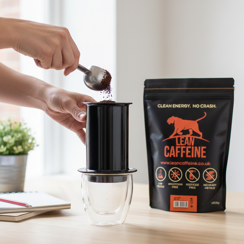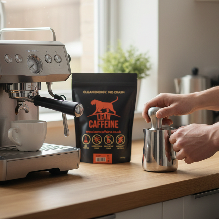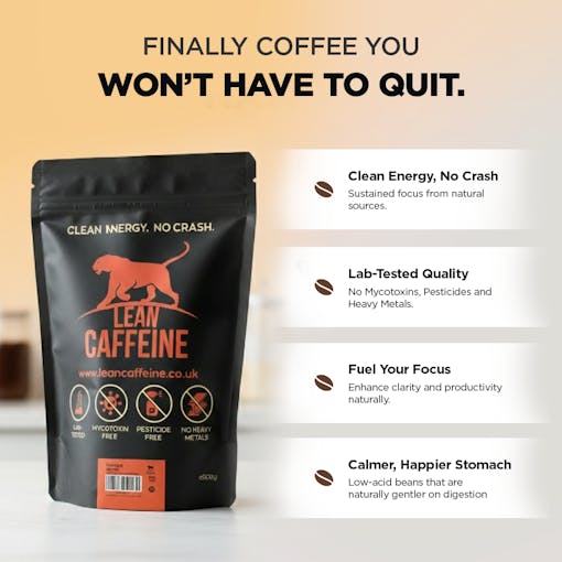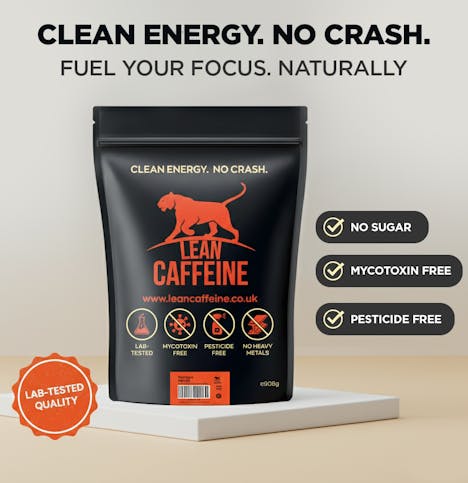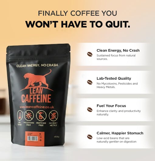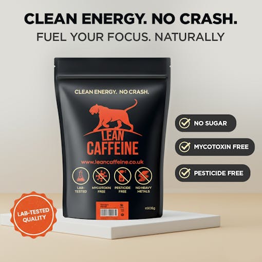 Lean Caffeine is slow-roasted for smooth, balanced energy, supporting calm focus and mental clarity without the harsh burn. Freshly roasted in the UK for cleaner taste and better results.